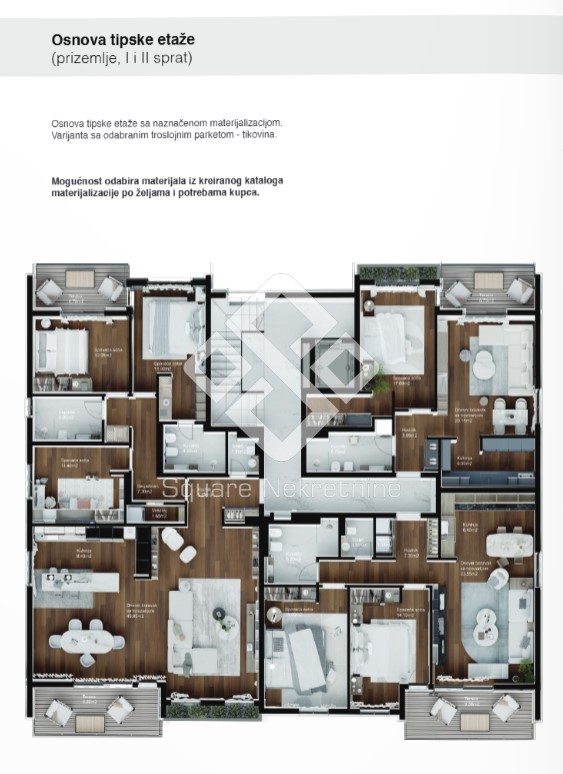 Na prodaju dvosoban stan,povrsine 86m2. Nalazi se u vili sa 9 stanova,koja je u izgradnji, u novom luksuznom kompleksu Verde Village. Stan ce imati obezbijedjen parking u suterenu vile a oko vile ce se prostirati veliko dvorište za stanare.Orjentisan je jugoistocno,pogled ka Skadarskom jezeru.Ocekivani rok za useljenje novembar 2026.