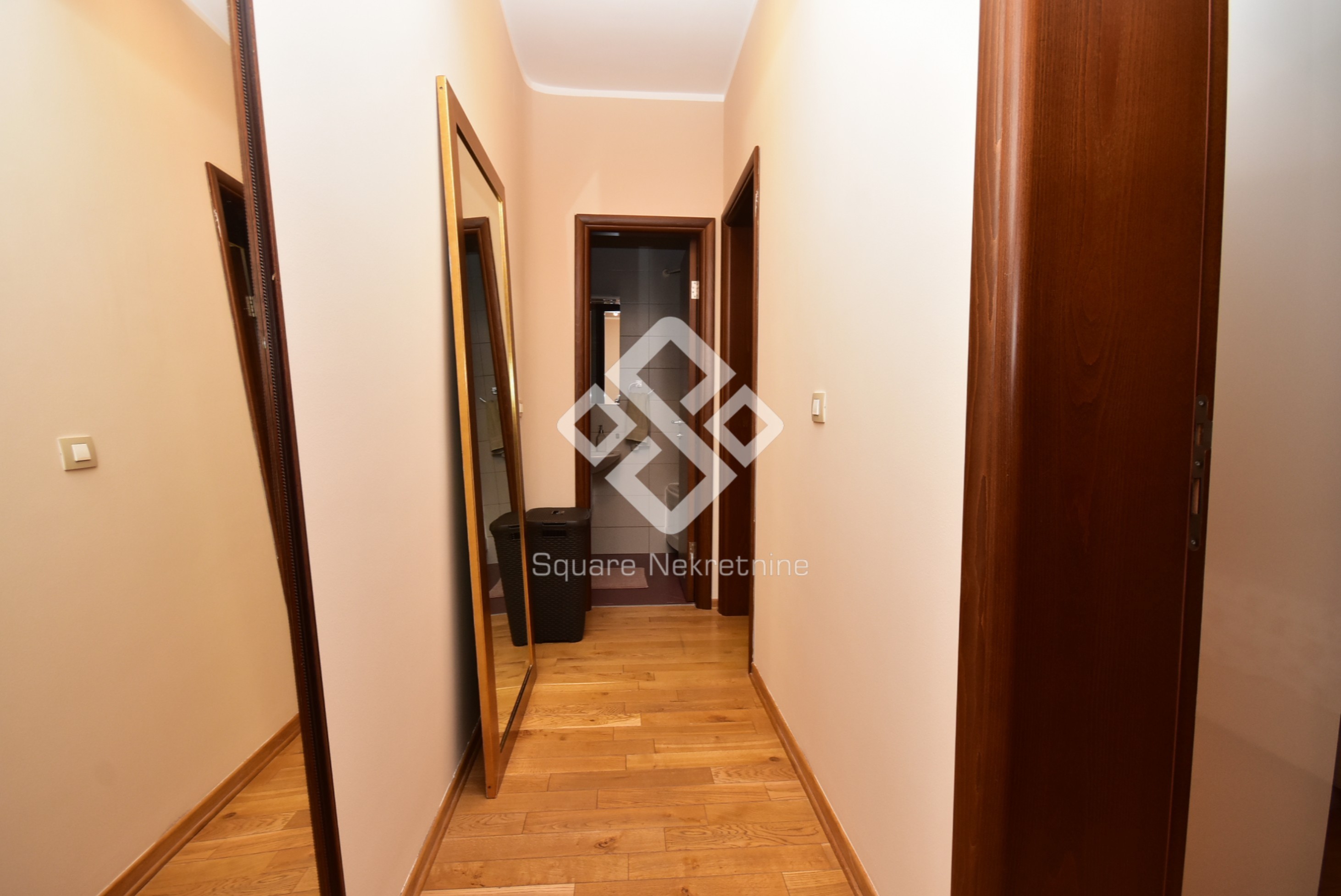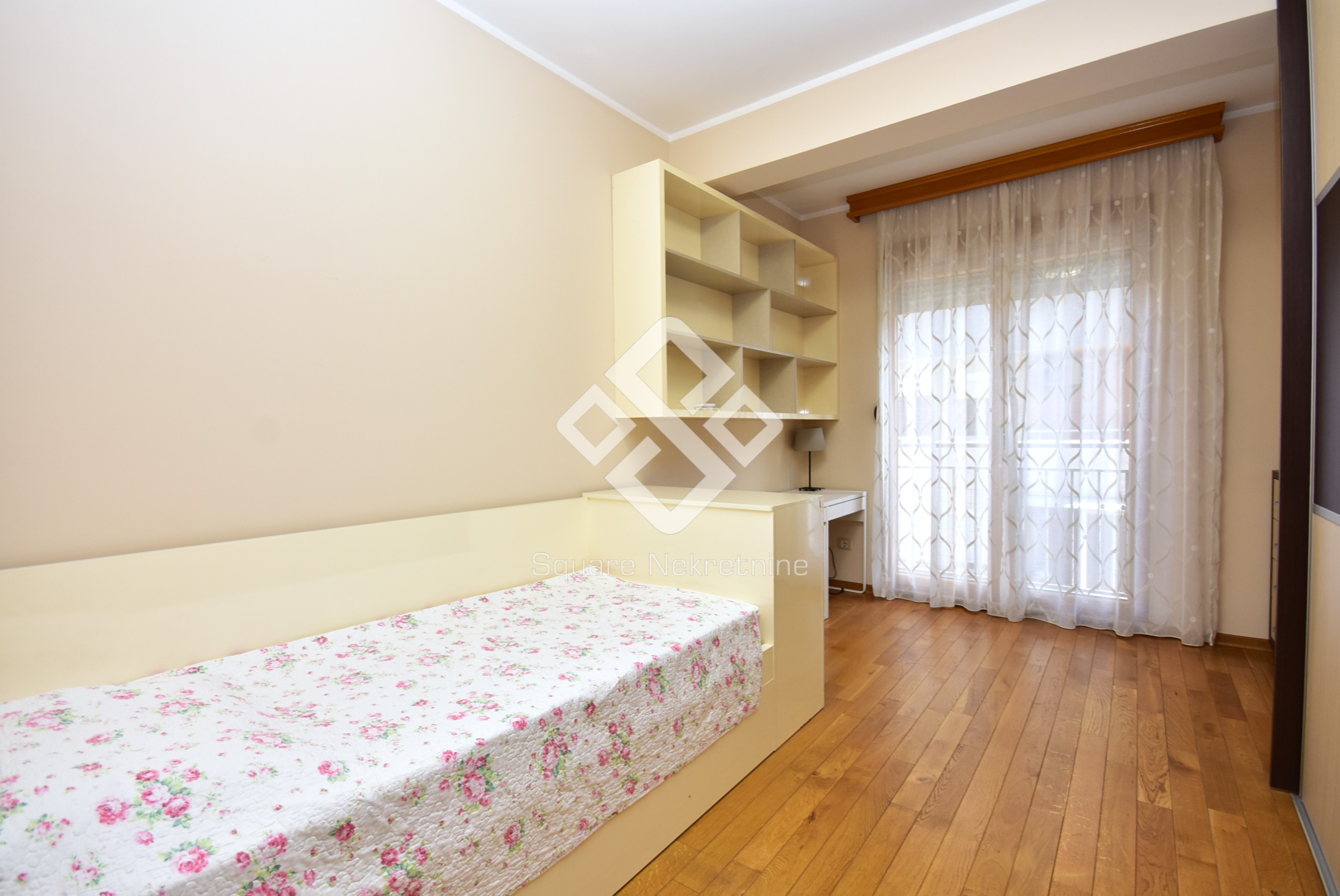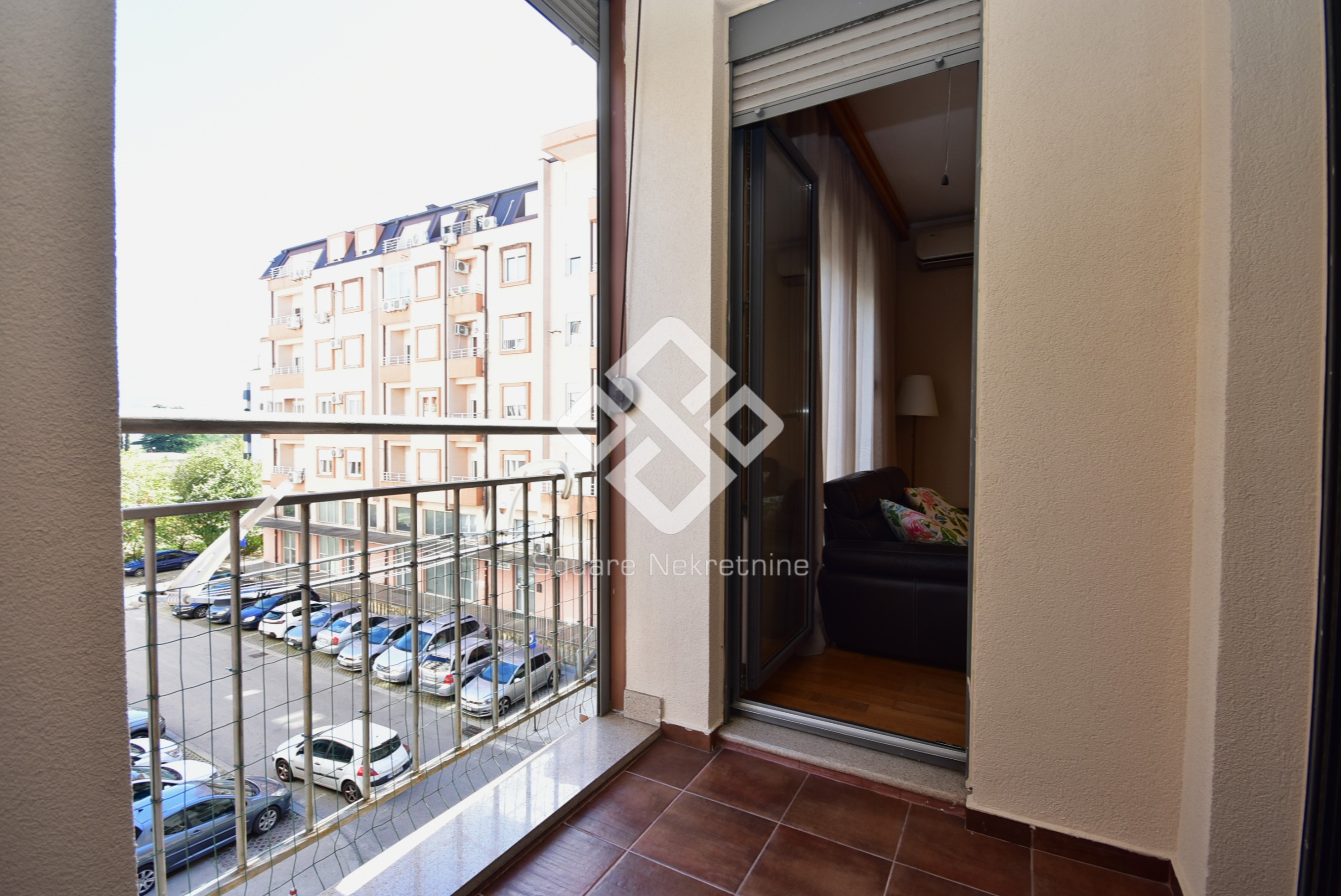 Za izdavanje dvosoban stan povrsine 72m2.Nalazi se na trecem spratu u zgradi kod djecije bolnice i krivog mosta.Stan je komforan i dobrog rasporeda,kompletno namjesten.Juzno je orjentisan i na dobroj lokaciji,nedaleko od trznog centra,mnogih marketa,kafica,restorana,dijela grada Preko Morace.Izdaje se na duzi period.