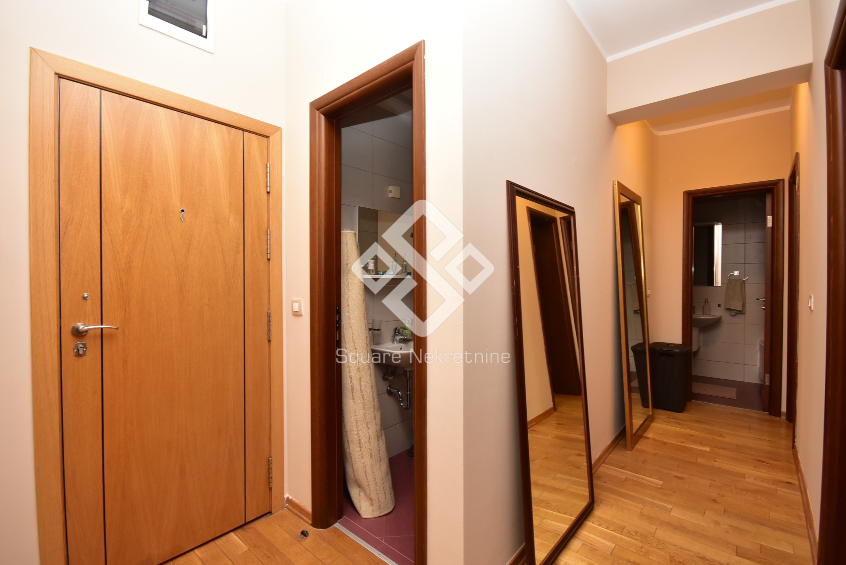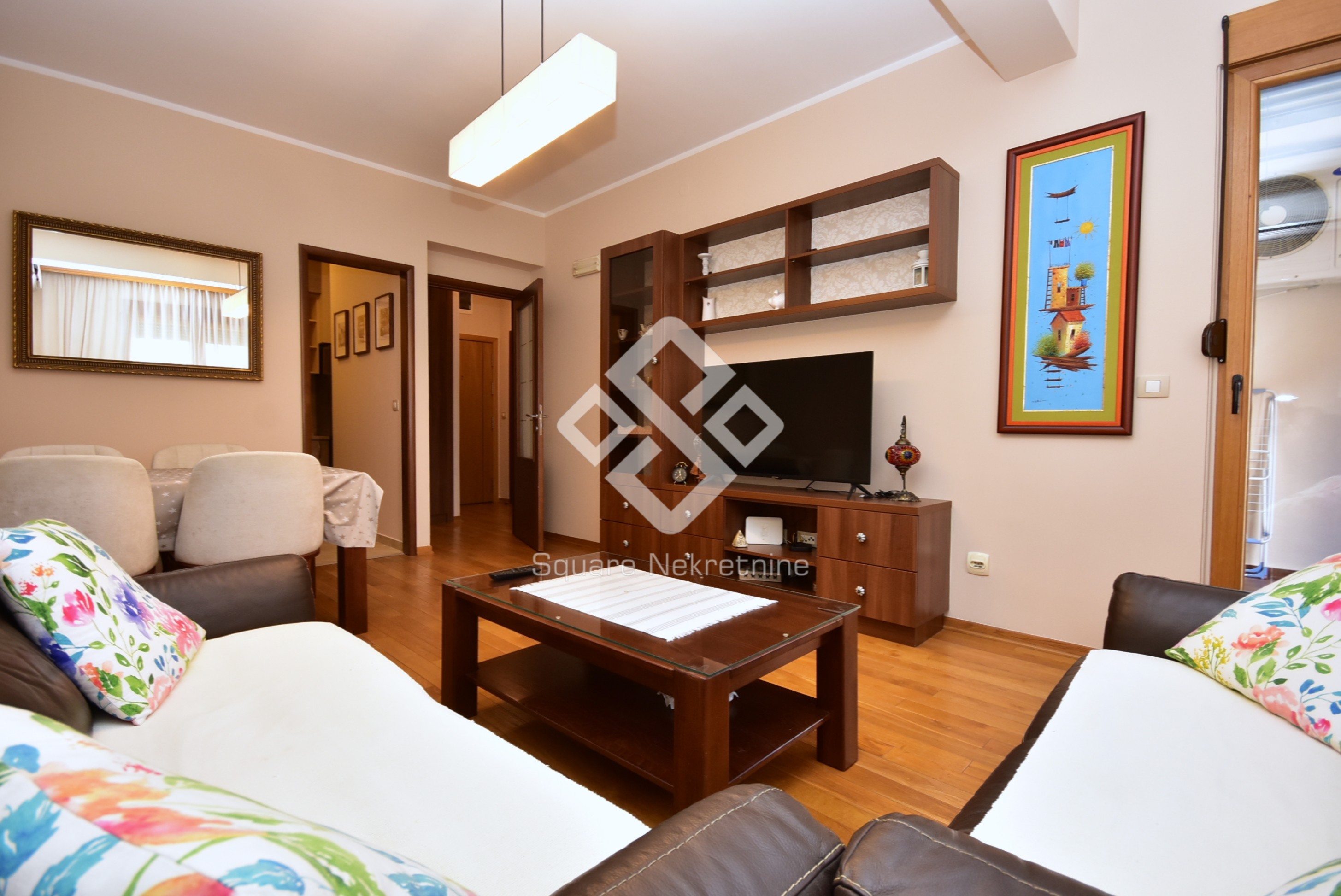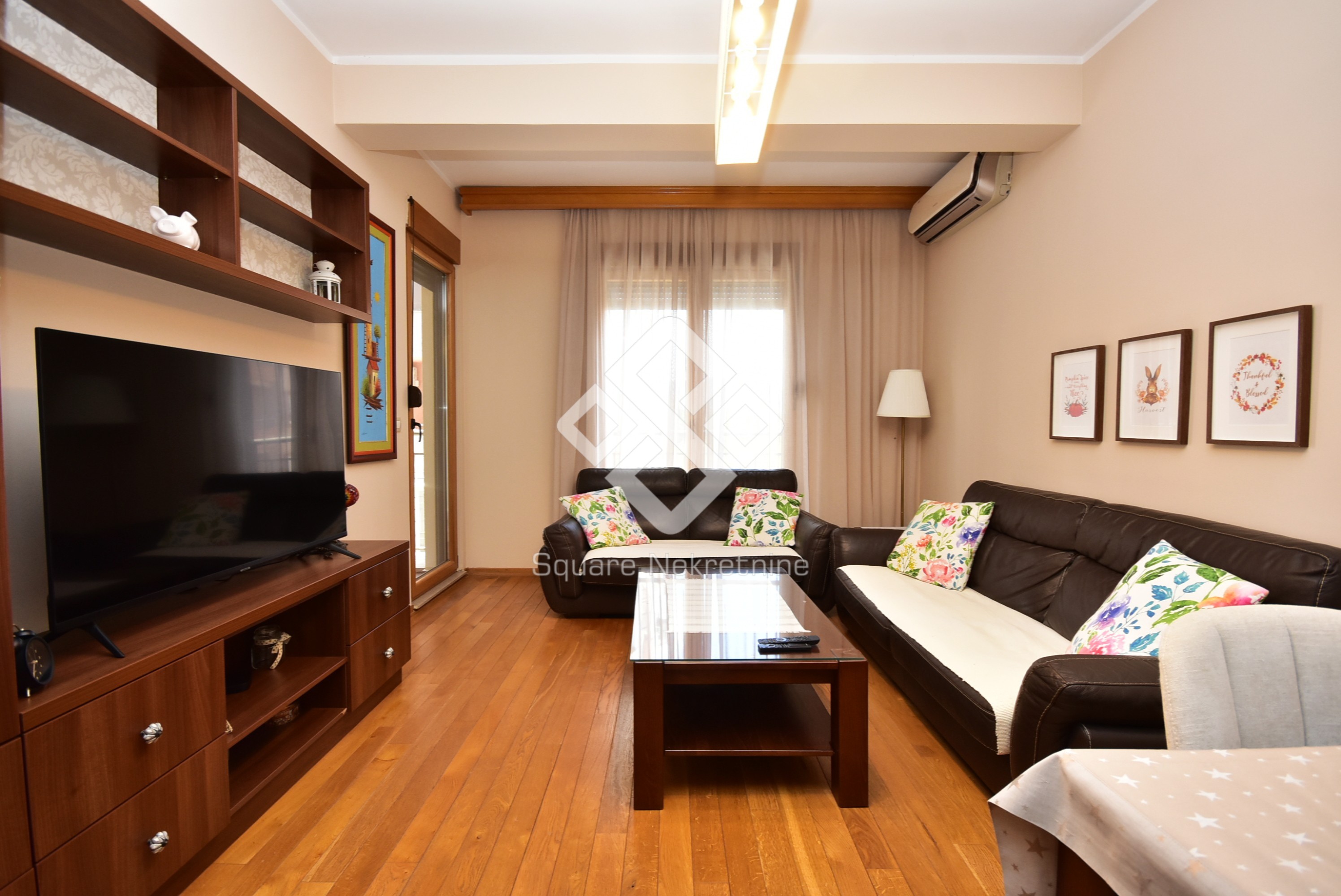 Za izdavanje dvosoban stan povrsine 72m2.Nalazi se na trecem spratu u zgradi kod djecije bolnice i krivog mosta.Stan je komforan i dobrog rasporeda,kompletno namjesten.Juzno je orjentisan i na dobroj lokaciji,nedaleko od trznog centra,mnogih marketa,kafica,restorana,dijela grada Preko Morace.Izdaje se na duzi period.