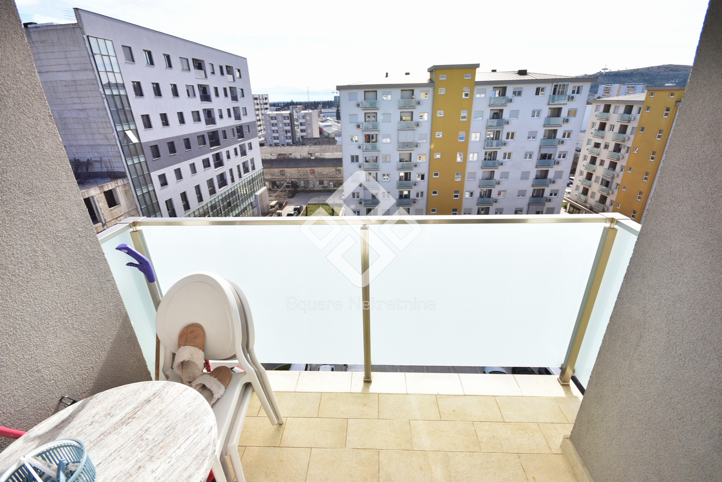 Na prodaju dvosoban stan povrsine 59m2.Nalazi se na sedmom spratu u novijoj zgradi Razvrsja,na Pobrezju.Dobrog je rasporeda,sa velikom dnevnom,odvojenom kuhinjom i galerijom od 10m2.Takodje posjeduje karticu za parking pod rampom kao i parking mjesto u garazi,koje se moze kupiti za 15.000e. Orjentisan je juzno i na dobroj lokaciji,u blizini osnovne skole i vrtica,vecih marketa,trznog centra i pijace,mnogih kafica i restorana.Pogodan kako za zivot tako i kao investicija za izdavanje.