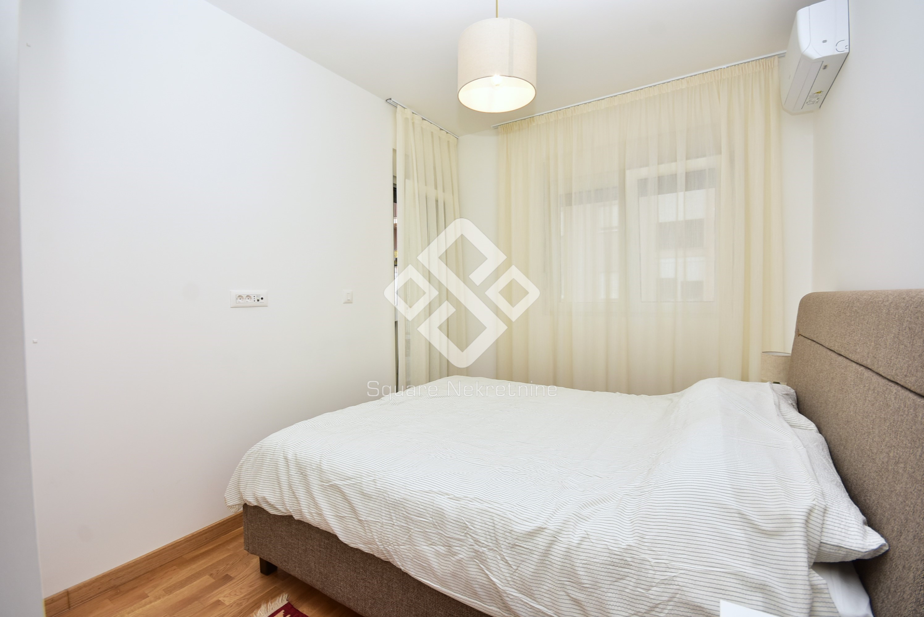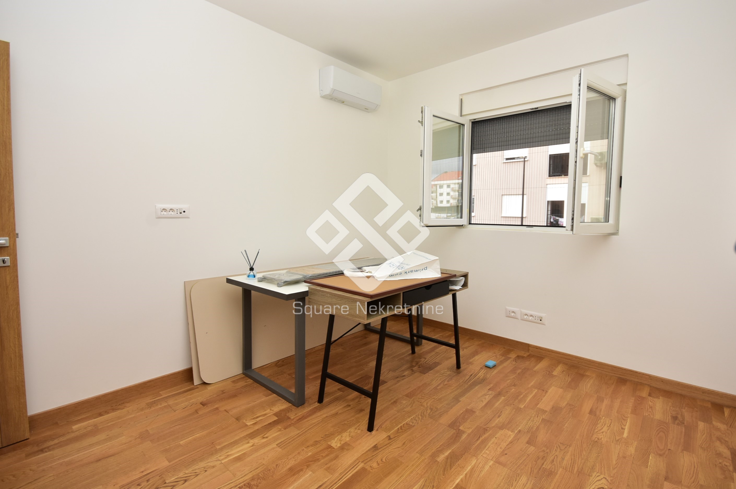 Za izdavanje dvosoban stan povrsine 65m2.Nalazi se na visokom prizemlju u zgradi Kips Gradnje, Family Residence,na Zabjelu.Stan je funkcionalan,kompletno i lijepo namjesten,osim druge sobe koja ce biti opremljena po zelji zakupca.Takodje,uz stan dolazi parking mjesto pod rampom.Mirna lokacija,par minuta od City Kvarta,dijela grada Preko Morace,vecih marketa,skola i vrtica.Orjentisan je zapadno i izdaje se na duzi period.