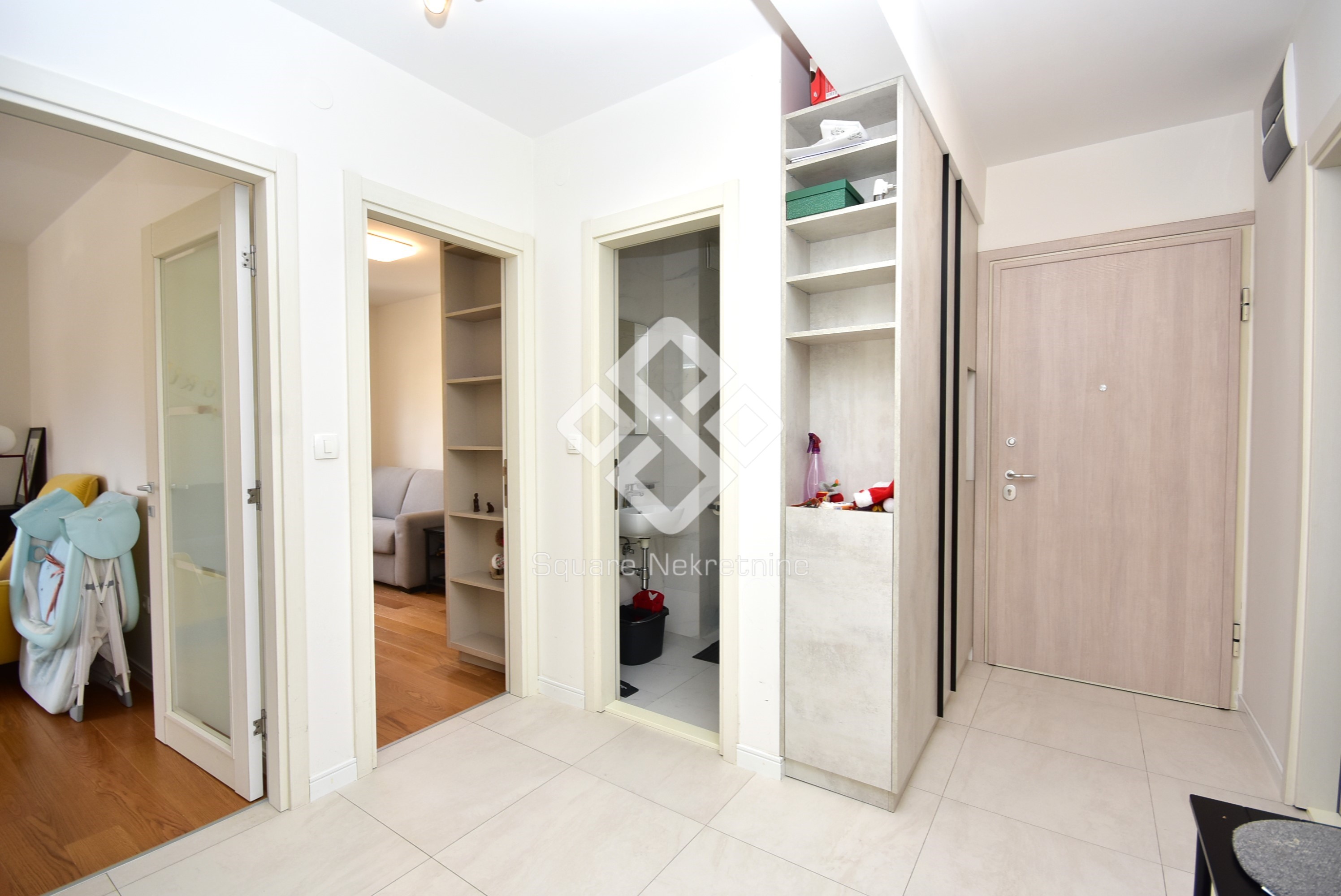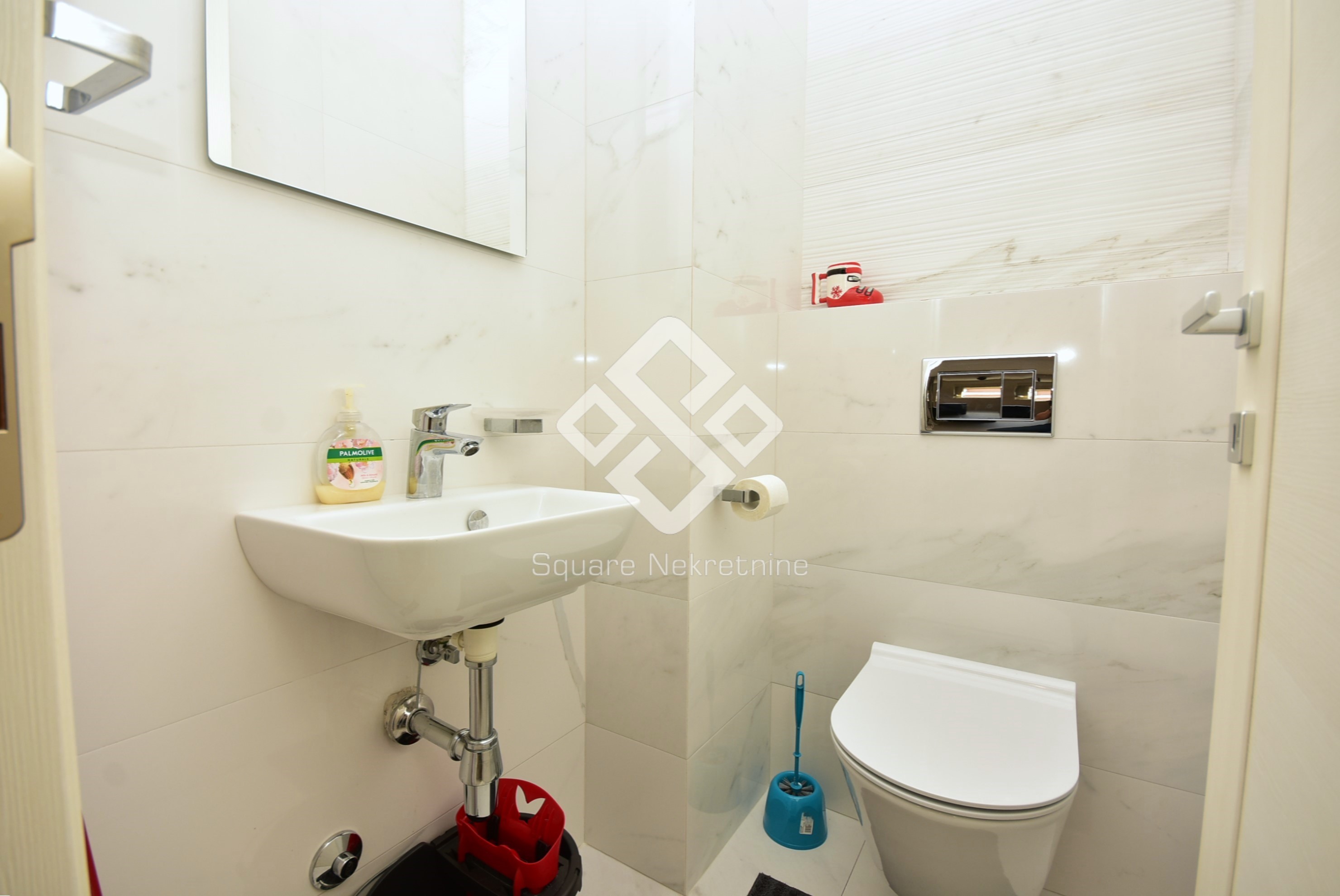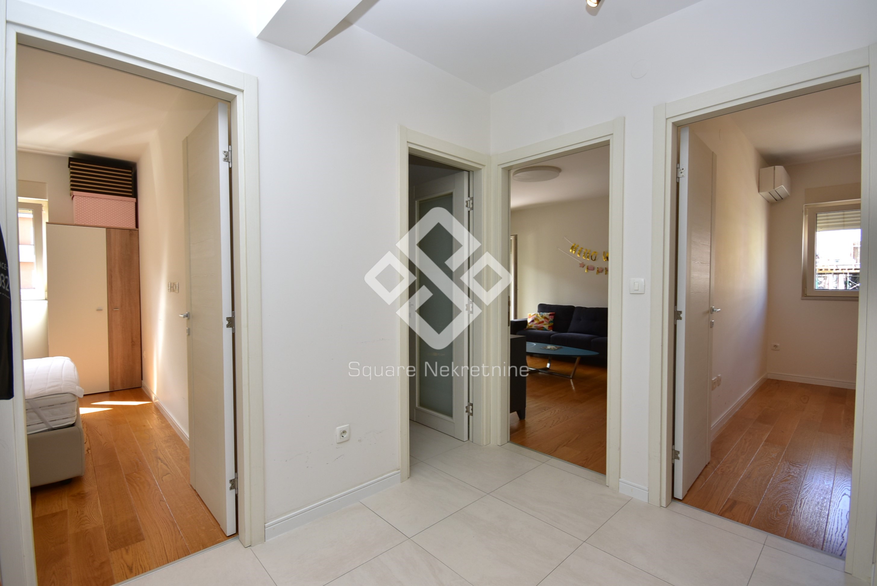 Za izdavanje dvosoban stan povrsine 70m2.Nalazi se na sestom spratu u drugoj zgradi Zetagradnje u Central Pointu.Stan dobrog rasporeda i komforan,orjentisan jugozapadno.Posjeduje dva parking mjesta u garazi,kao i ostavu od 5m2,koje ulaze u cijenu.Na odlicnoj lokaciji,u blizini trznog centra,mnogih institucija,firmi,kafica,restorana,marketa i radnji.Izdaje se na duzi period.