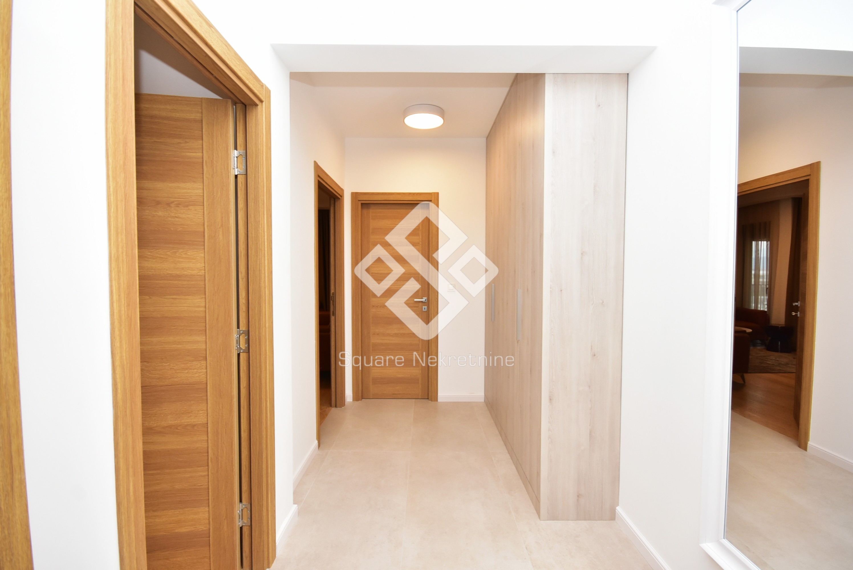 Za izdavanje nov dvosoban stan povrsine 75m2.Nalazi se na cetvrtom spratu u novoj zgradi Kipsa u City Kvartu,kod Super Volija.Stan je neuseljavan,veoma komforan i odlicnog rasporeda.Kompletno i kvalitetno je opremljen a posjeduje i parking mjesto u garazi,ukljuceno u cijenu.Orjentisan je istocno i na odlicnoj lokaciji,u blizini Super Volija, trznog centra,mnogih kafica,restorana,marketa i radnji.Izdaje se na duzi period.