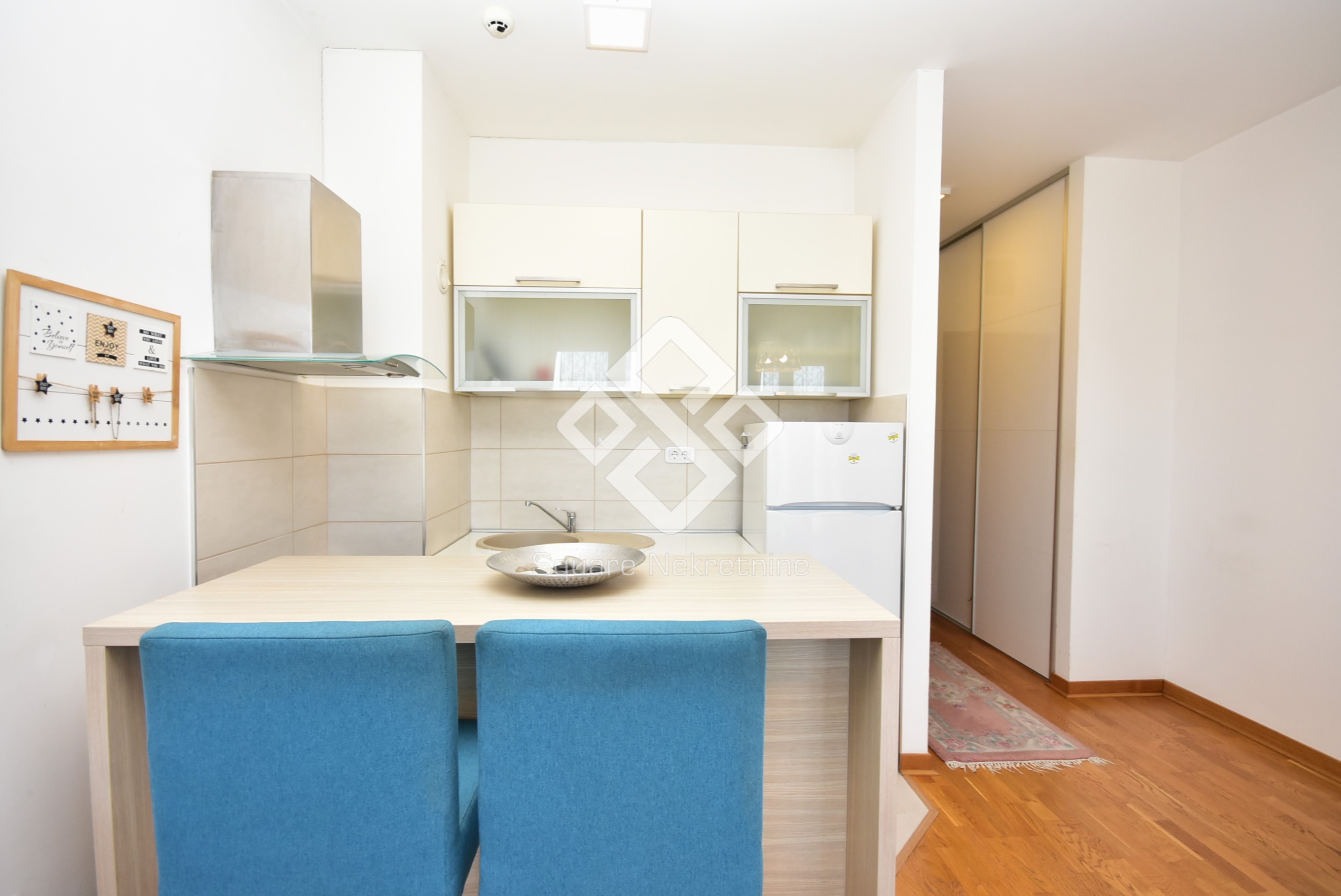 Za izdavavanje garsonjera povrsine 26m2.Nalazi se na sedmom spratu u zgradi Celebic u City Kvartu.Veoma je funkcionalna,kompletno i lijepo opremljena.Orjentisana je zapadno i na dobroj lokaciji,u blizini marketa,kafica,restorana,trznog centra.Izdaje se na duzi period.