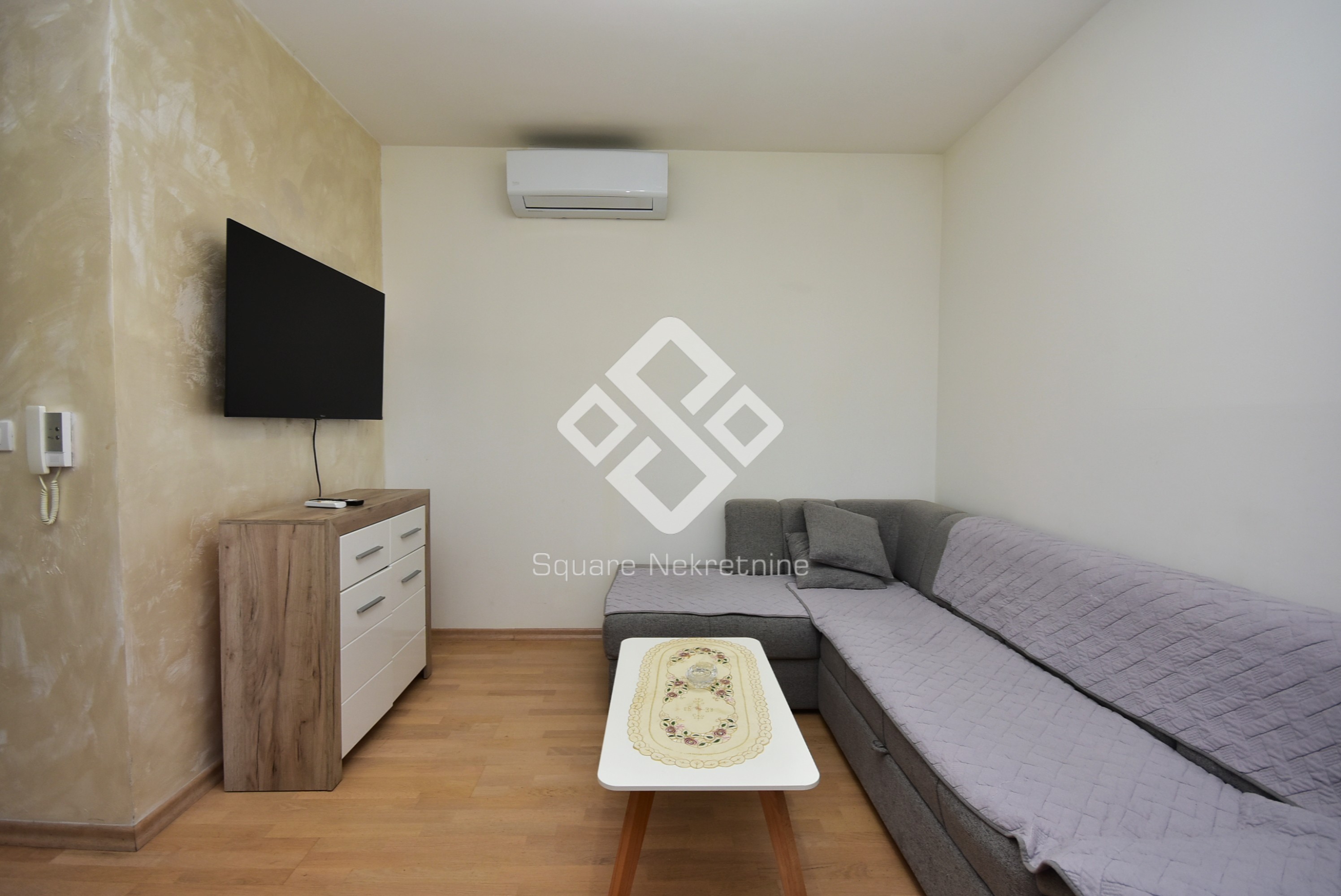 Za izdavanje garsonjera povrsine 34m2.Nalazi se na drugom spratu u zgradi hotela Signum,na Pobrezju.Garsonjera je komforna,kompletno namjestena,orjentisana zapadno.Na dobroj lokaciji,u blizini mnogih marketa,kafica,restorana,trznog centra.Izdaje se na duzi period.