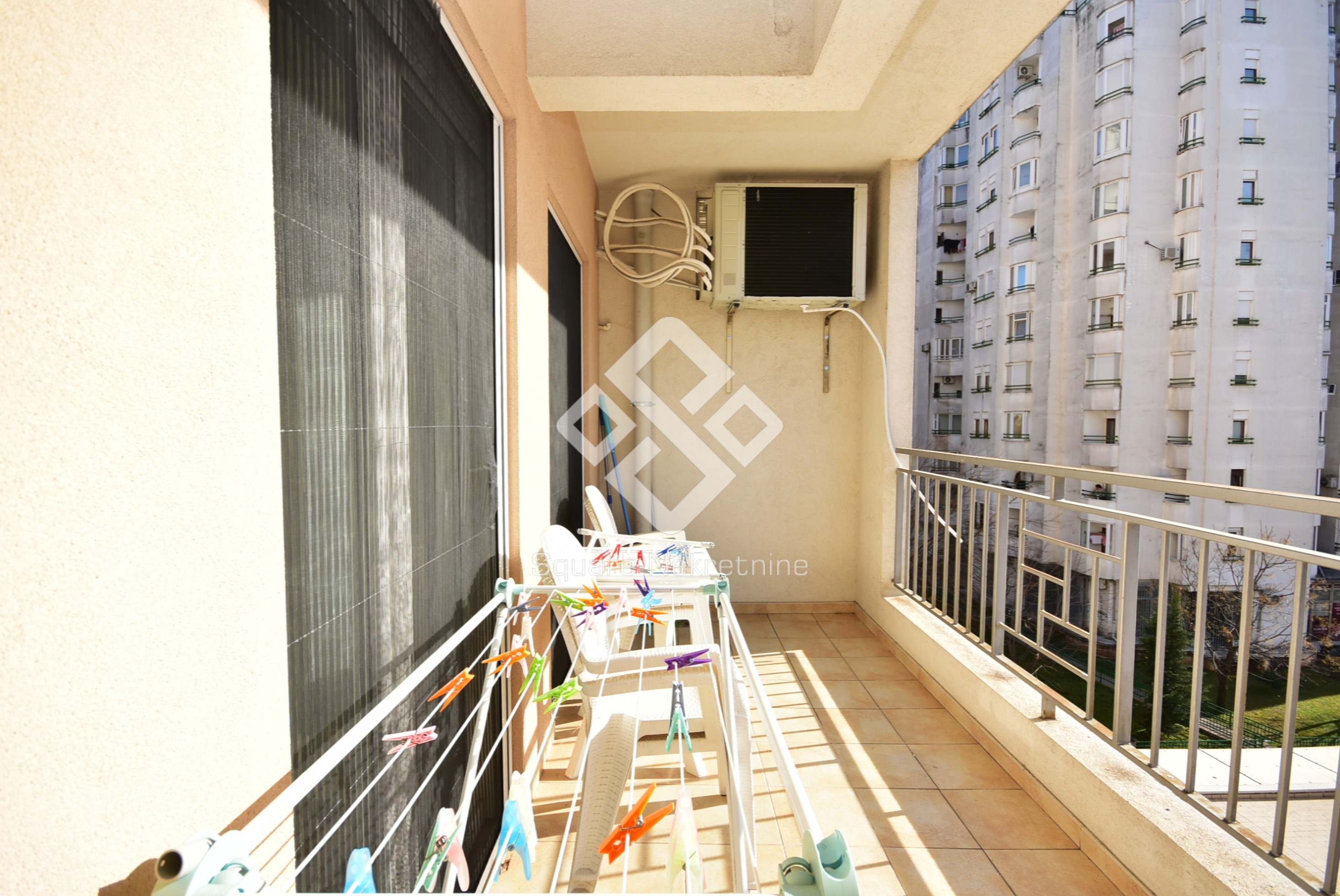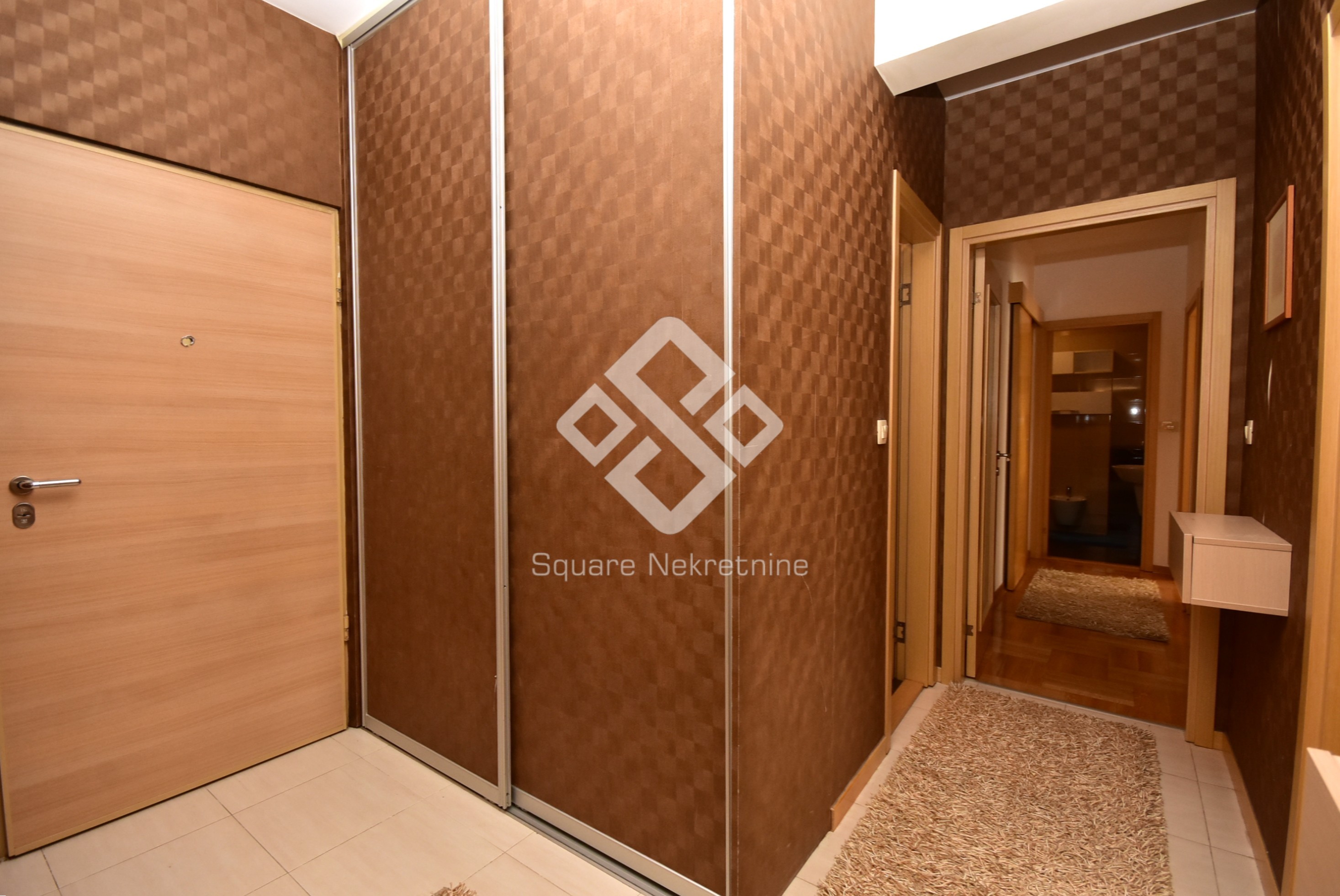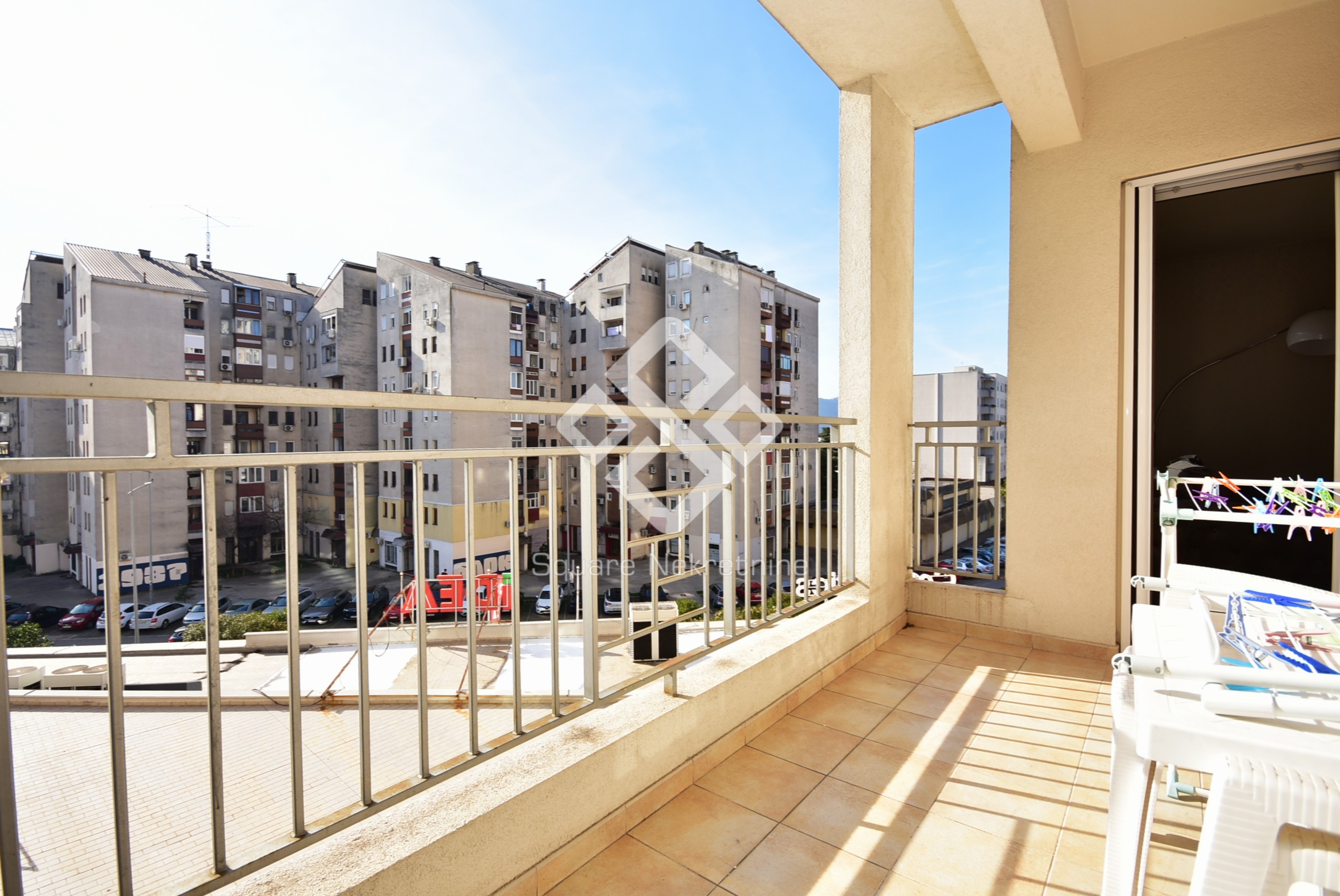 Za izdavanje trosoban stan povrsine 100m2.Nalazi se na trecem spratu u zgradi Zetagradnje u Bloku 9.Stan je veoma komforan i odlicnog rasporeda.Sastoji se iz dnevne sobe,trpezarije,kuhinje,tri spavace sobe,tri terase,dva kupatila,toaleta,hodnika i veseraja.Takodje,uz stan dolazi parking mjesto u garazi,ukljuceno u cijenu.Na odlicnoj lokaciji,u blizini vrtica i skole,mnogih marketa,kafica,pekara,restorana,kao i park sume.Orjentisan je juzno i izdaje se na duzi period.