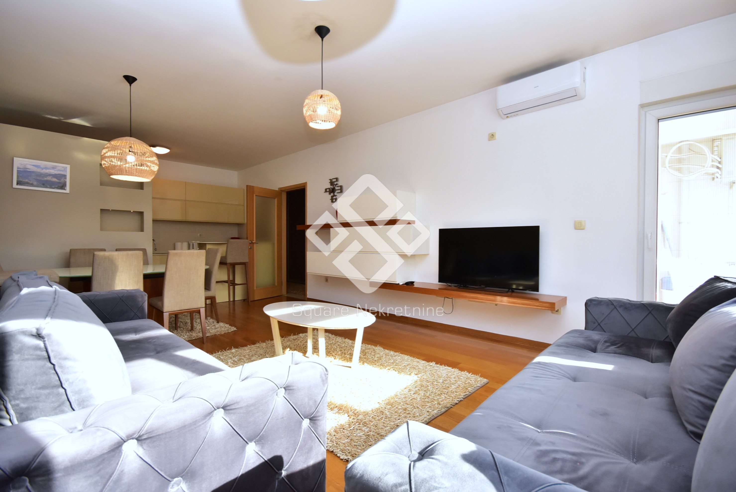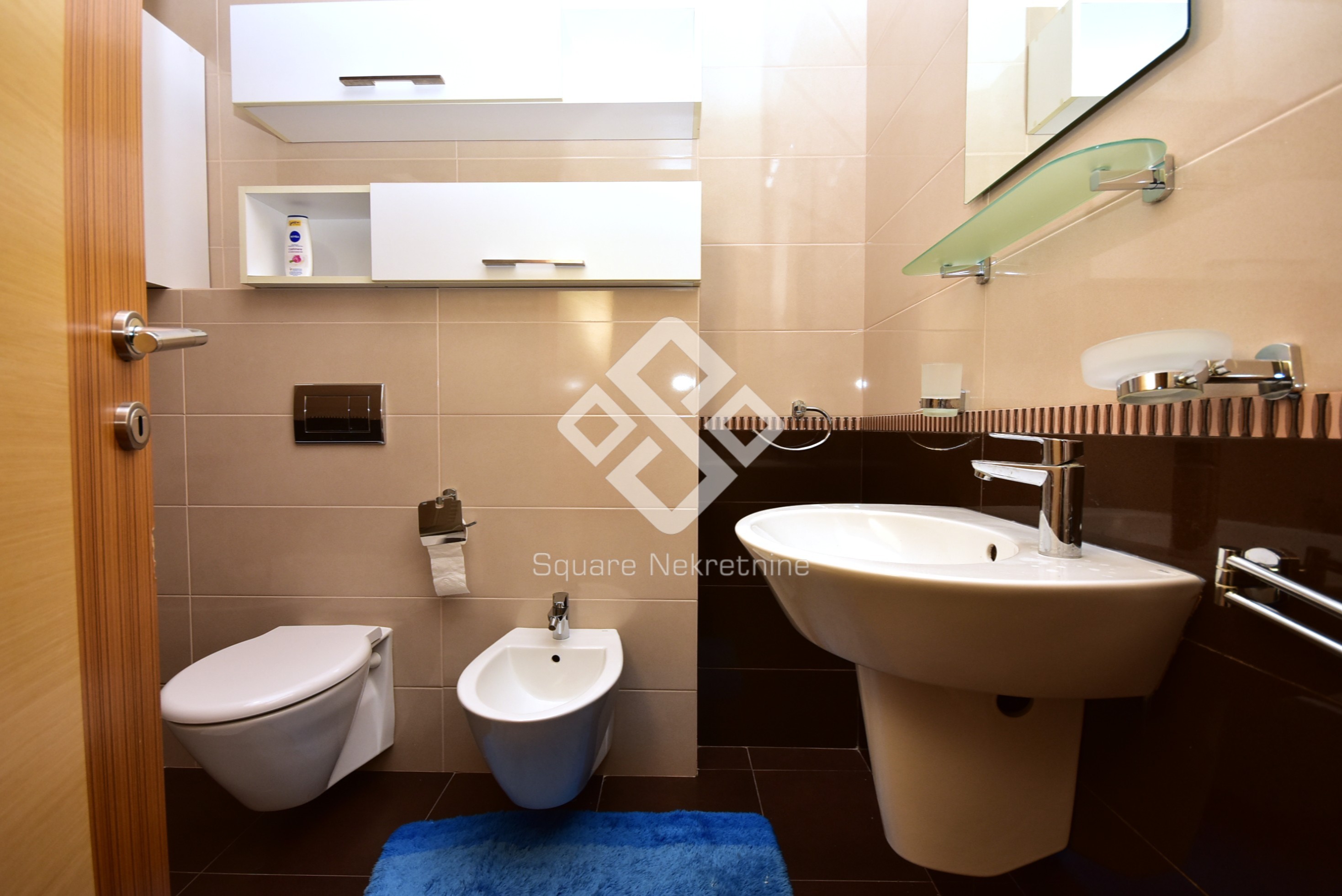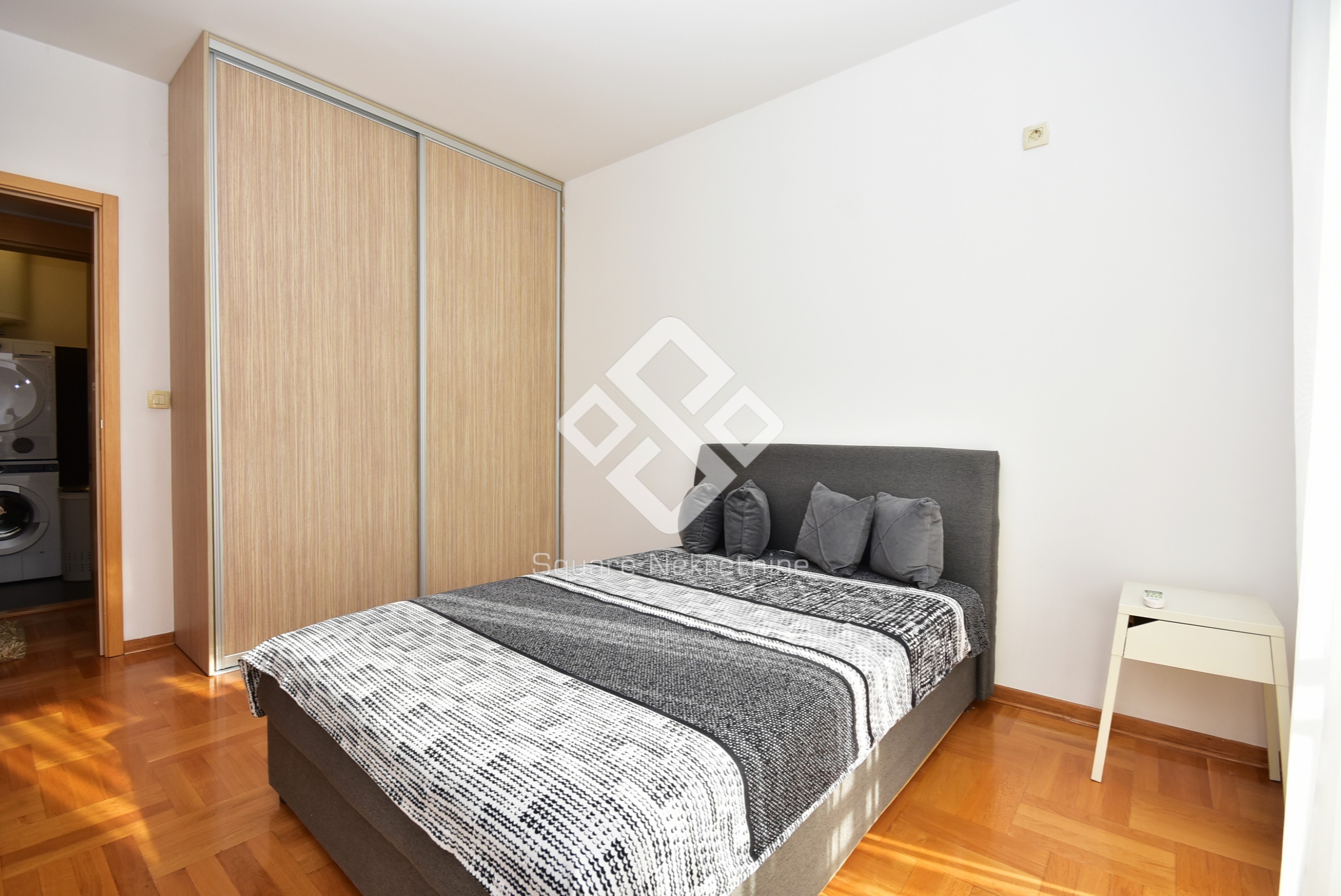 Za izdavanje trosoban stan povrsine 100m2.Nalazi se na trecem spratu u zgradi Zetagradnje u Bloku 9.Stan je veoma komforan i odlicnog rasporeda.Sastoji se iz dnevne sobe,trpezarije,kuhinje,tri spavace sobe,tri terase,dva kupatila,toaleta,hodnika i veseraja.Takodje,uz stan dolazi parking mjesto u garazi,ukljuceno u cijenu.Na odlicnoj lokaciji,u blizini vrtica i skole,mnogih marketa,kafica,pekara,restorana,kao i park sume.Orjentisan je juzno i izdaje se na duzi period.