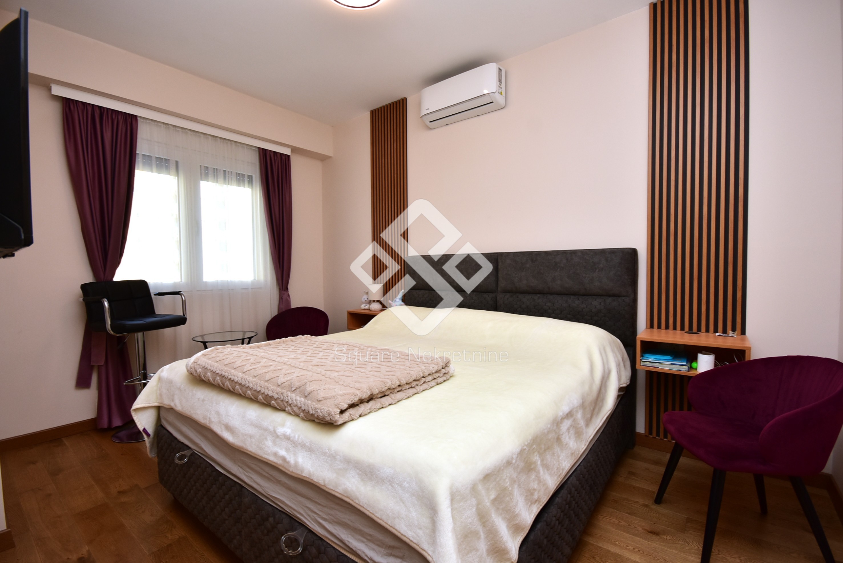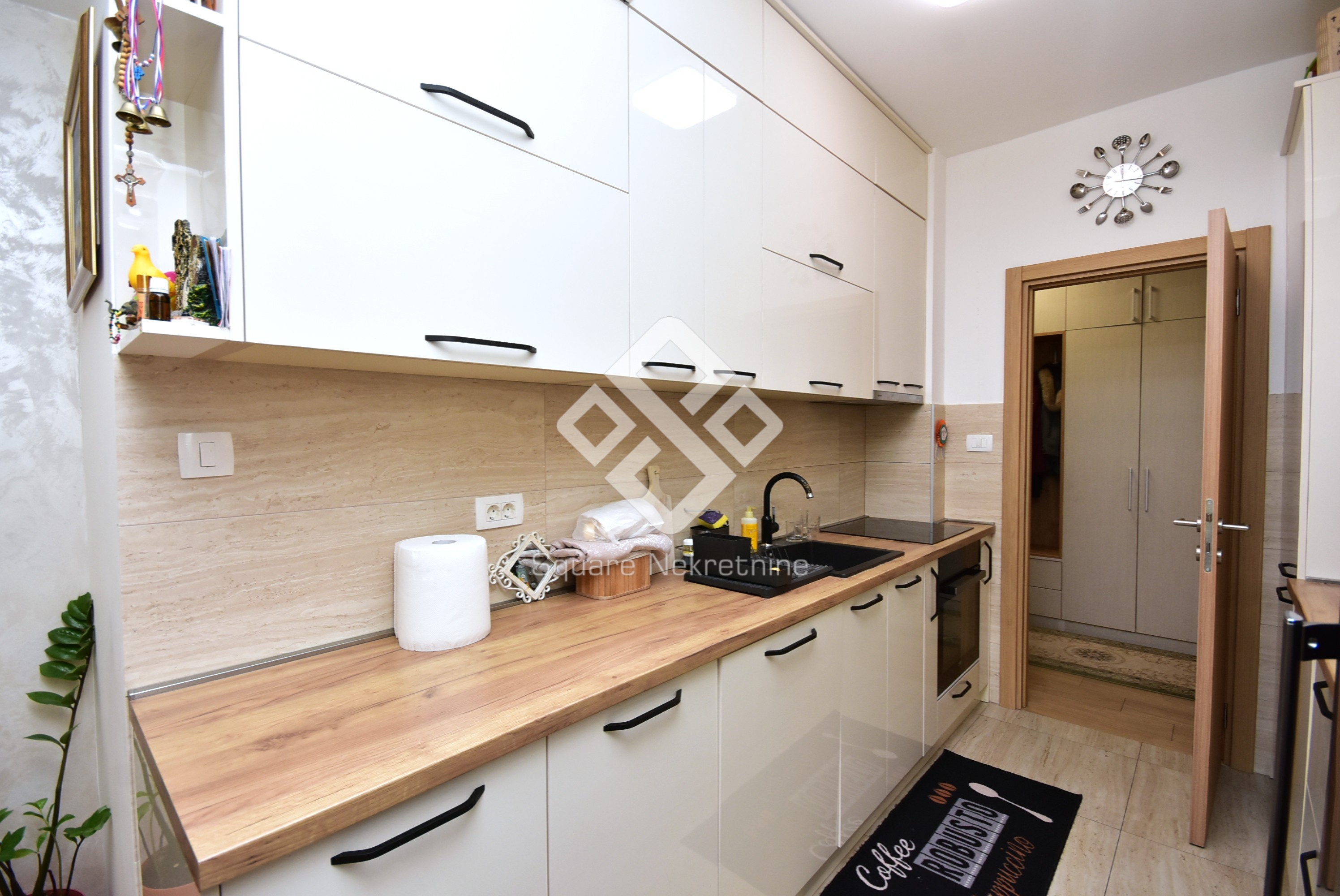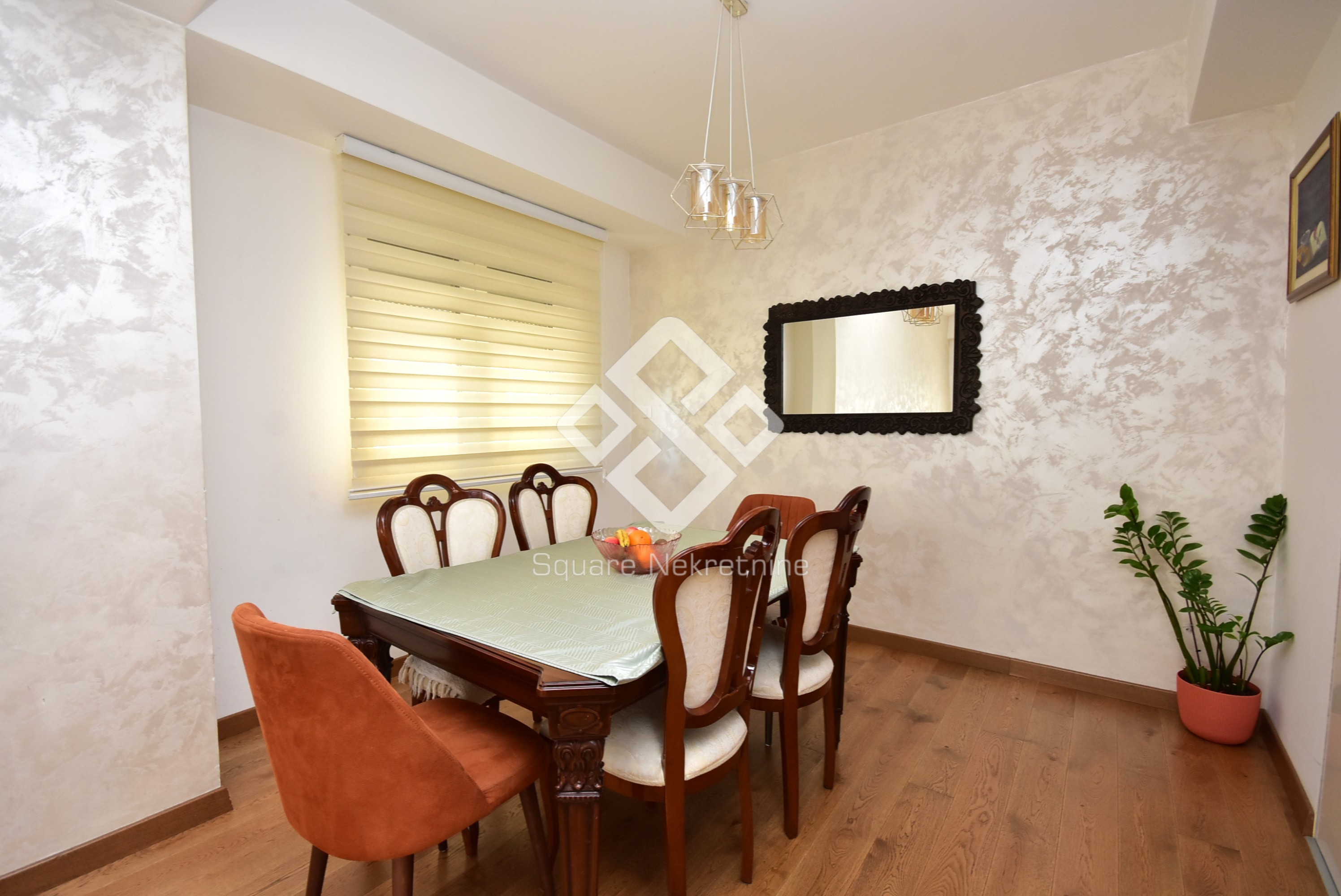 Na prodaju trosoban stan povrsine 114m2.Nalazi se na prvom spratu u zgradi Razvrsja,na Pobrezju. Stan je veoma komforan i odlicnog rasporeda,kompletno i kvalitetno namjesten i kao takav se prodaje.Sastoji se iz dnevne sobe,trpezarije,kuhinje,tri spavace sobe od kojih je jedna sa svojim kupatilom, dvije terase,kupatila,toaleta,gardrobera,hodnika i predsoblja.Takodje posjeduje dva parking mjesta pod rampom.Na odlicnoj lokaciji,u blizini skola,vrtica,trznog centra i pijace,vecih marketa,kafica i restorana.