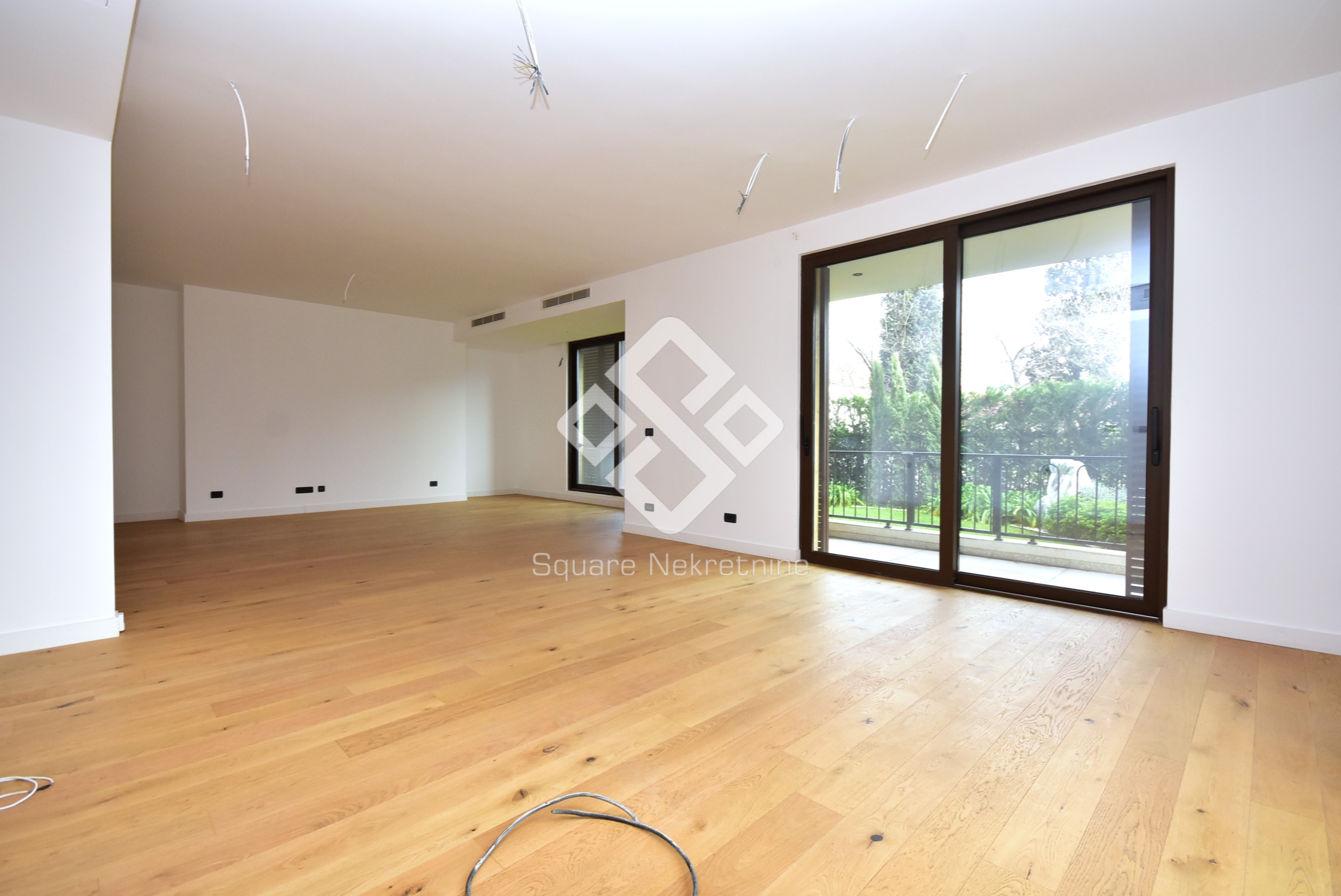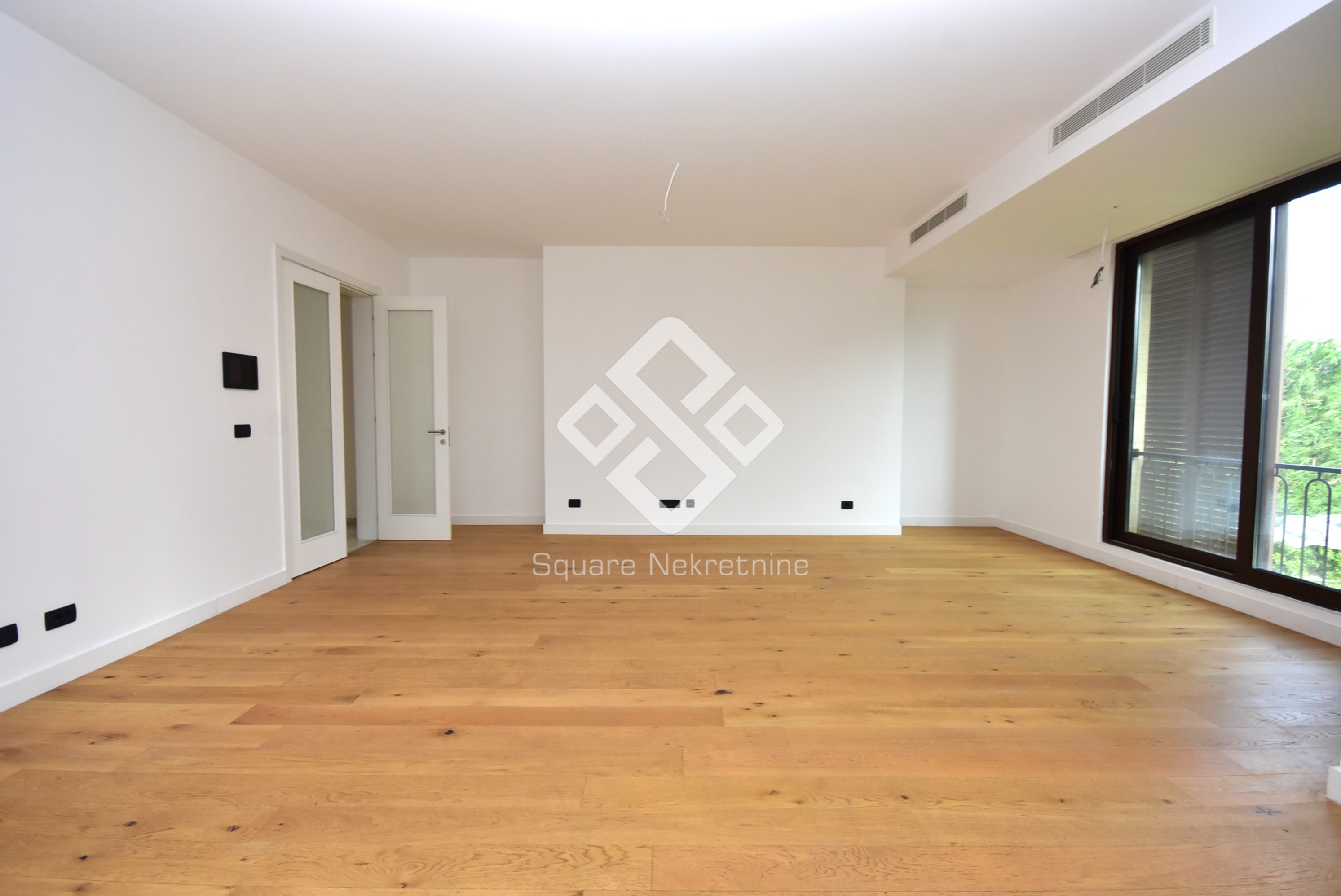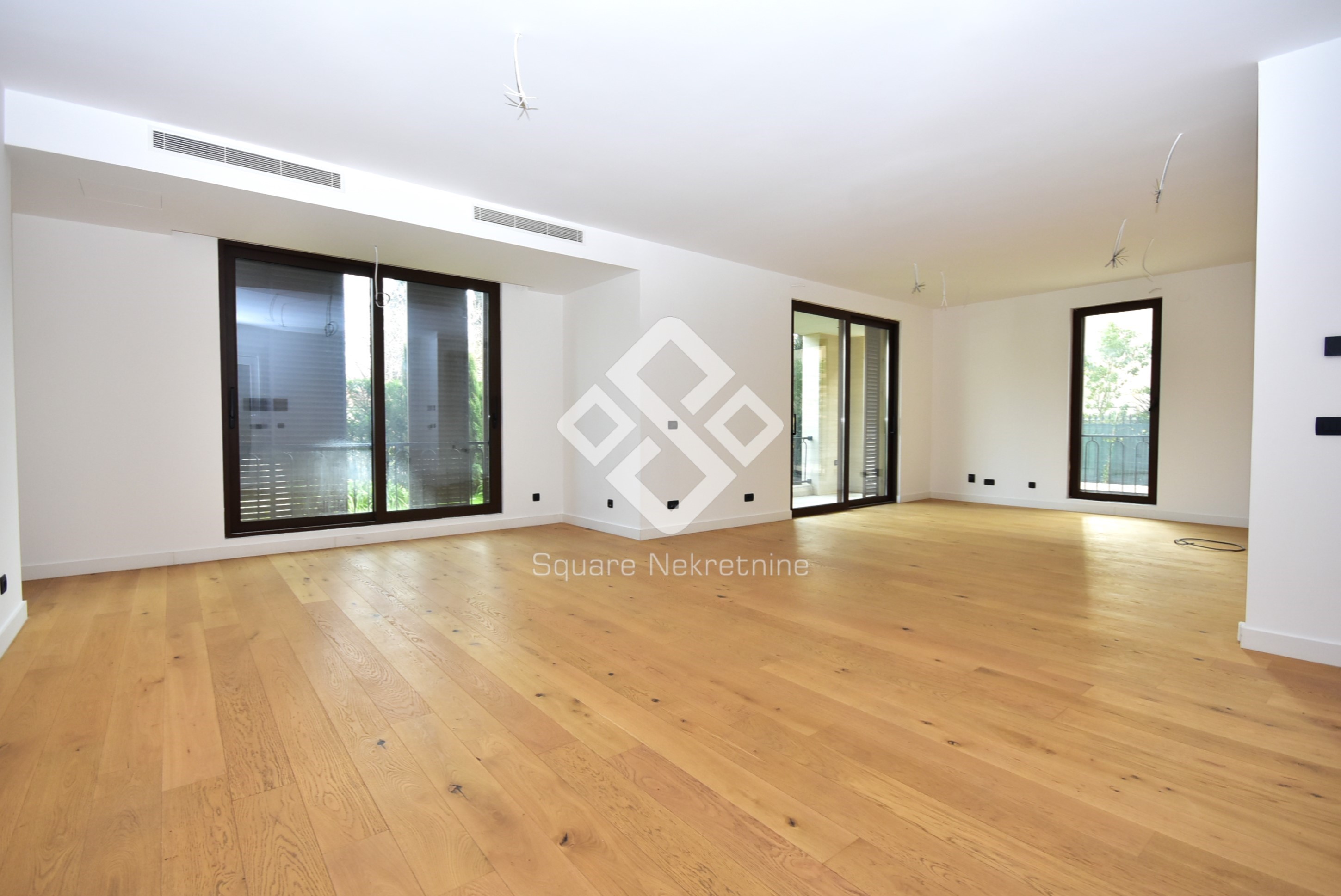Na prodaju eksluzivan trosoban stan povrsine 137m2 koji posjeduje i svojih 50m2 baste.Nalazi se na prizemlju zgrade Kings Residence,u ul Kralja Nikole,u blizini brda Ljubovic,par minuta od centra grada i dijela grada Preko Morace. Stan je veoma komforan i odlicnog rasporeda.Sastoji se iz velike dnevne sobe,kuhinje,trpezrije,tri spavace sobe,od kojih je jedna master,sa svojim kupatilom i garderoberom,dva kupatila,toaleta,tehnicke sobe i terase.Takodje,stan posjeduje dva parking mjesta u garazi,koja su ukljucena u cijenu.Kompletan stan je opremljen Smart Home sistemom ciji pregled imate na kucnim tabletima i mobilnim uredjajima.Vrata su blindirana,sa otiskom prsta prilikom otkljucavanja kao i čipom.Tehnicko osoblje moze imati samo jednokratnu lozinku koja se brise prilikom prvog ulaska u stan, sto je dodatna sigurnost. Zgrada je uradjena savremeno, od kvalitetnih materijala, Alumil bravarije kao i italijanske keramike i francuskih podova.U sklopu zgrade smjestena je i recepcija kao i video nadzor 24h/7 a garaza se otvara putem čitača tablica. U dvorisnom dijelu zgrade, nalazi se igraliste za djecu, koje mozete pratiti putem Tv-ekrana u samom stanu preko kamere koja prati igraliste. Zgrada posjeduje 10 stanova, 2 stana po spratu- zatvoreni sistem stanovanja. U slucaju kupovine preko kredita,obezbijedjena je pomoc pri dobijanju kredita kod NLB banke.