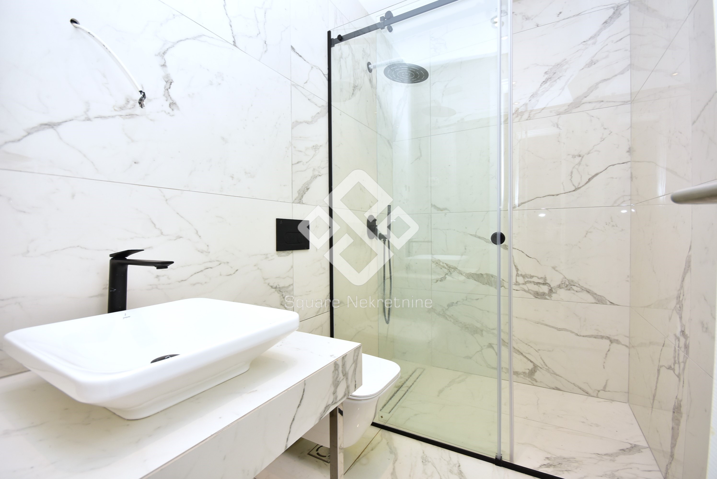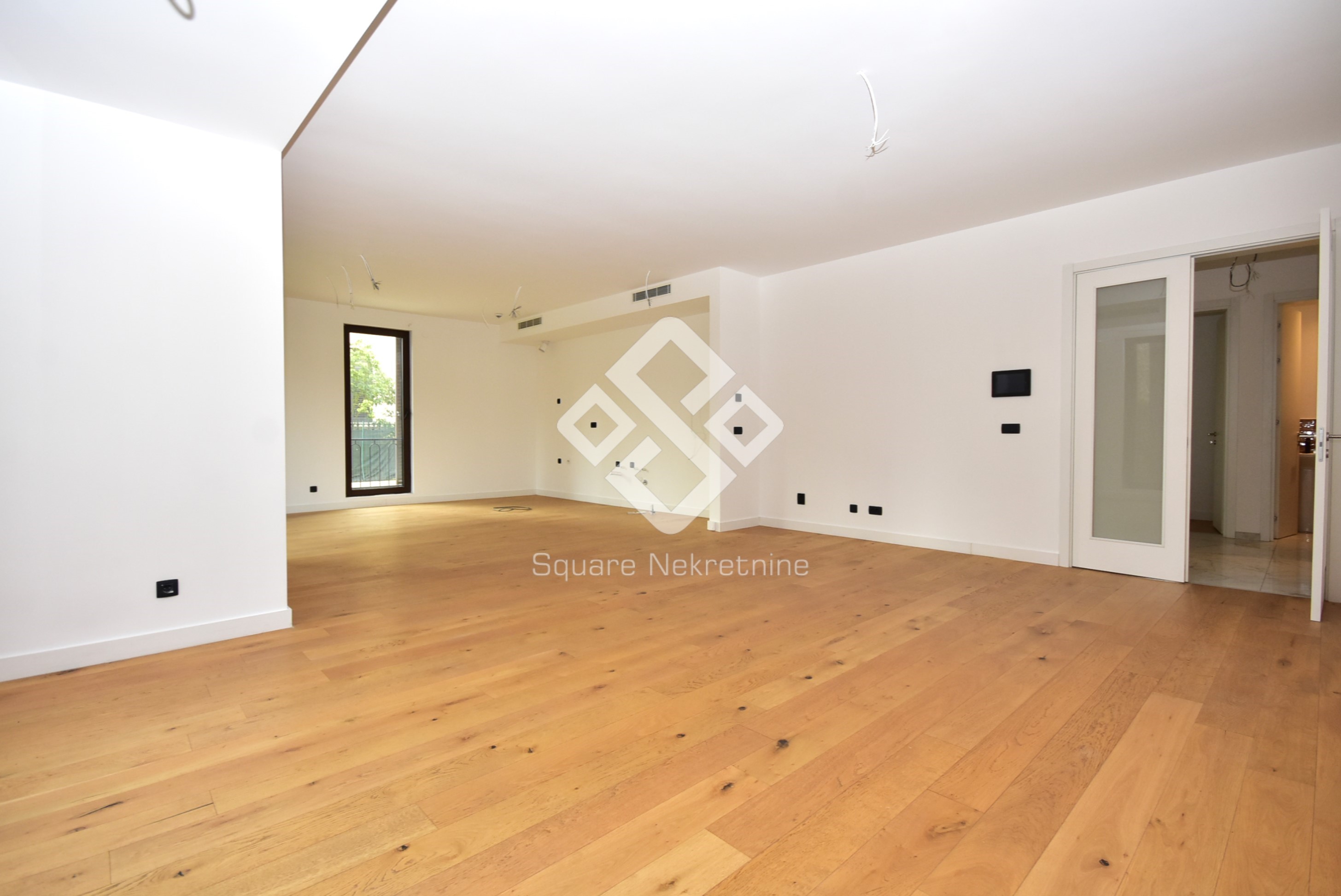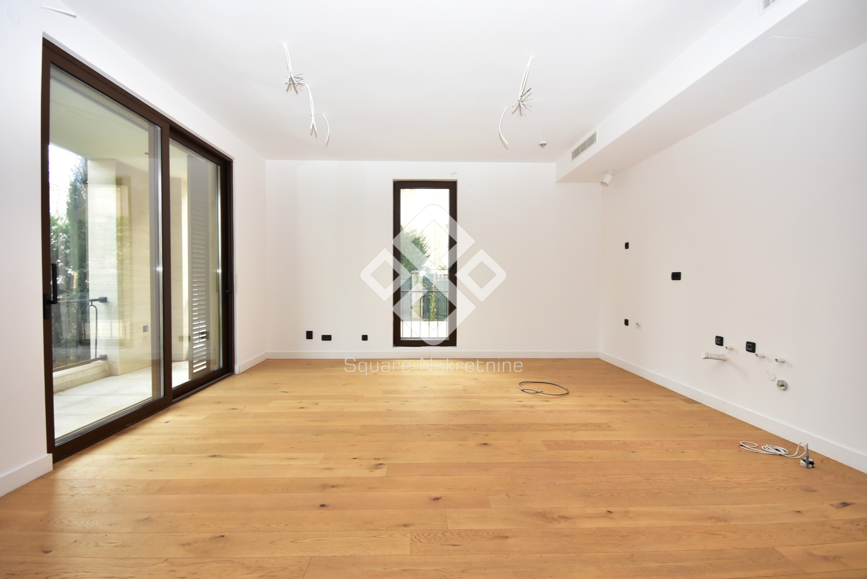Na prodaju eksluzivan trosoban stan povrsine 137m2 koji posjeduje i svojih 50m2 baste.Nalazi se na prizemlju zgrade Kings Residence,u ul Kralja Nikole,u blizini brda Ljubovic,par minuta od centra grada i dijela grada Preko Morace. Stan je veoma komforan i odlicnog rasporeda.Sastoji se iz velike dnevne sobe,kuhinje,trpezrije,tri spavace sobe,od kojih je jedna master,sa svojim kupatilom i garderoberom,dva kupatila,toaleta,tehnicke sobe i terase.Takodje,stan posjeduje dva parking mjesta u garazi,koja su ukljucena u cijenu.Kompletan stan je opremljen Smart Home sistemom ciji pregled imate na kucnim tabletima i mobilnim uredjajima.Vrata su blindirana,sa otiskom prsta prilikom otkljucavanja kao i čipom.Tehnicko osoblje moze imati samo jednokratnu lozinku koja se brise prilikom prvog ulaska u stan, sto je dodatna sigurnost. Zgrada je uradjena savremeno, od kvalitetnih materijala, Alumil bravarije kao i italijanske keramike i francuskih podova.U sklopu zgrade smjestena je i recepcija kao i video nadzor 24h/7 a garaza se otvara putem čitača tablica. U dvorisnom dijelu zgrade, nalazi se igraliste za djecu, koje mozete pratiti putem Tv-ekrana u samom stanu preko kamere koja prati igraliste. Zgrada posjeduje 10 stanova, 2 stana po spratu- zatvoreni sistem stanovanja. U slucaju kupovine preko kredita,obezbijedjena je pomoc pri dobijanju kredita kod NLB banke.