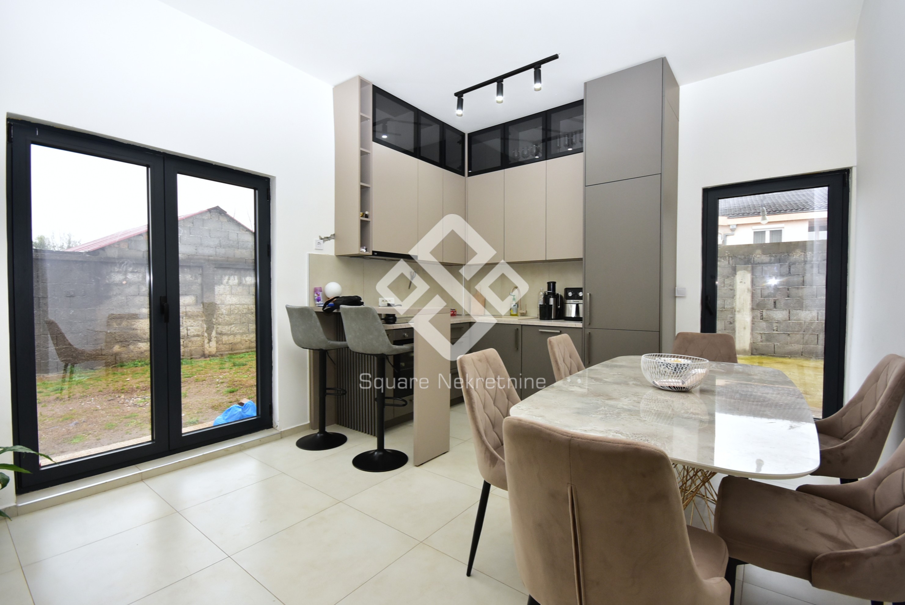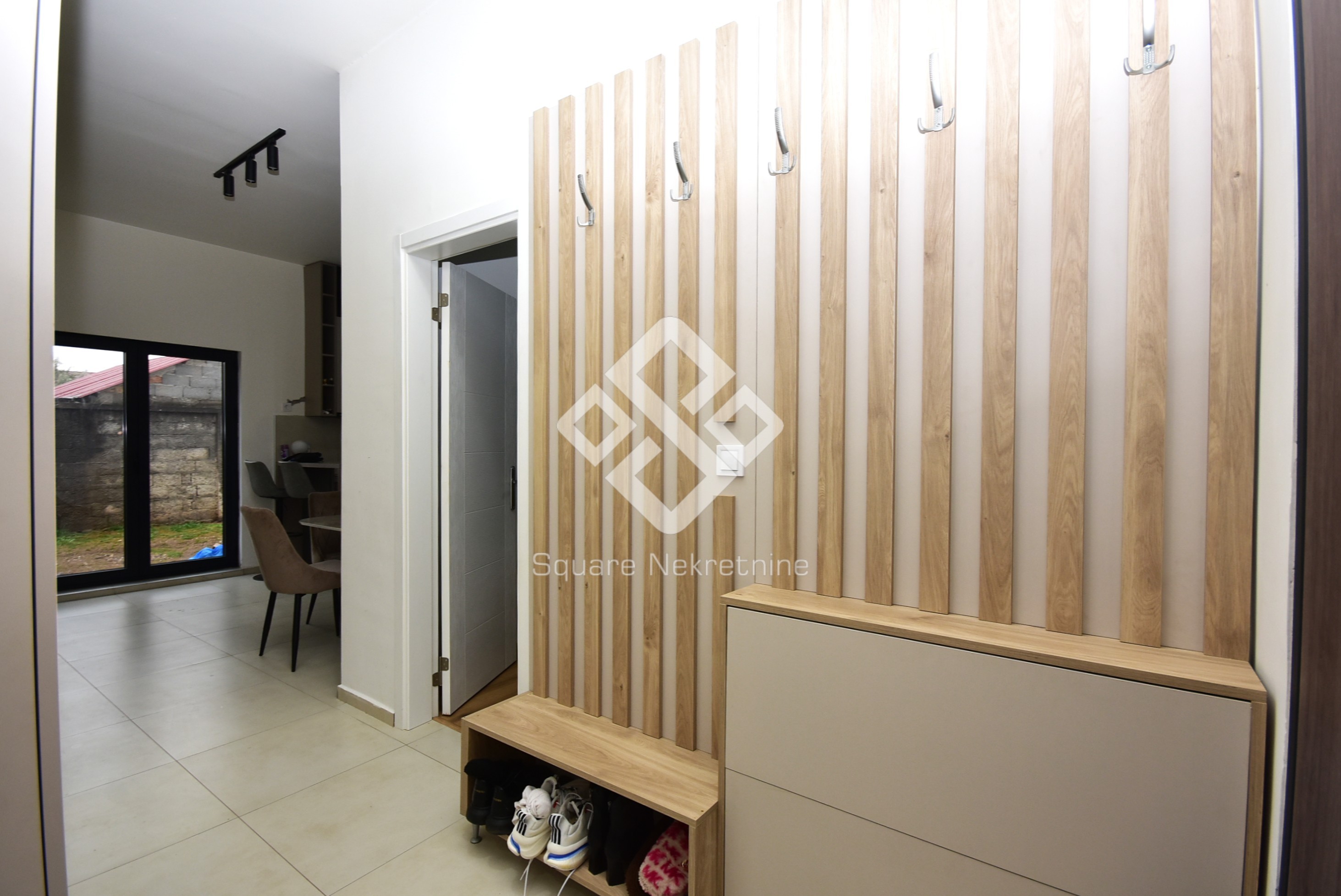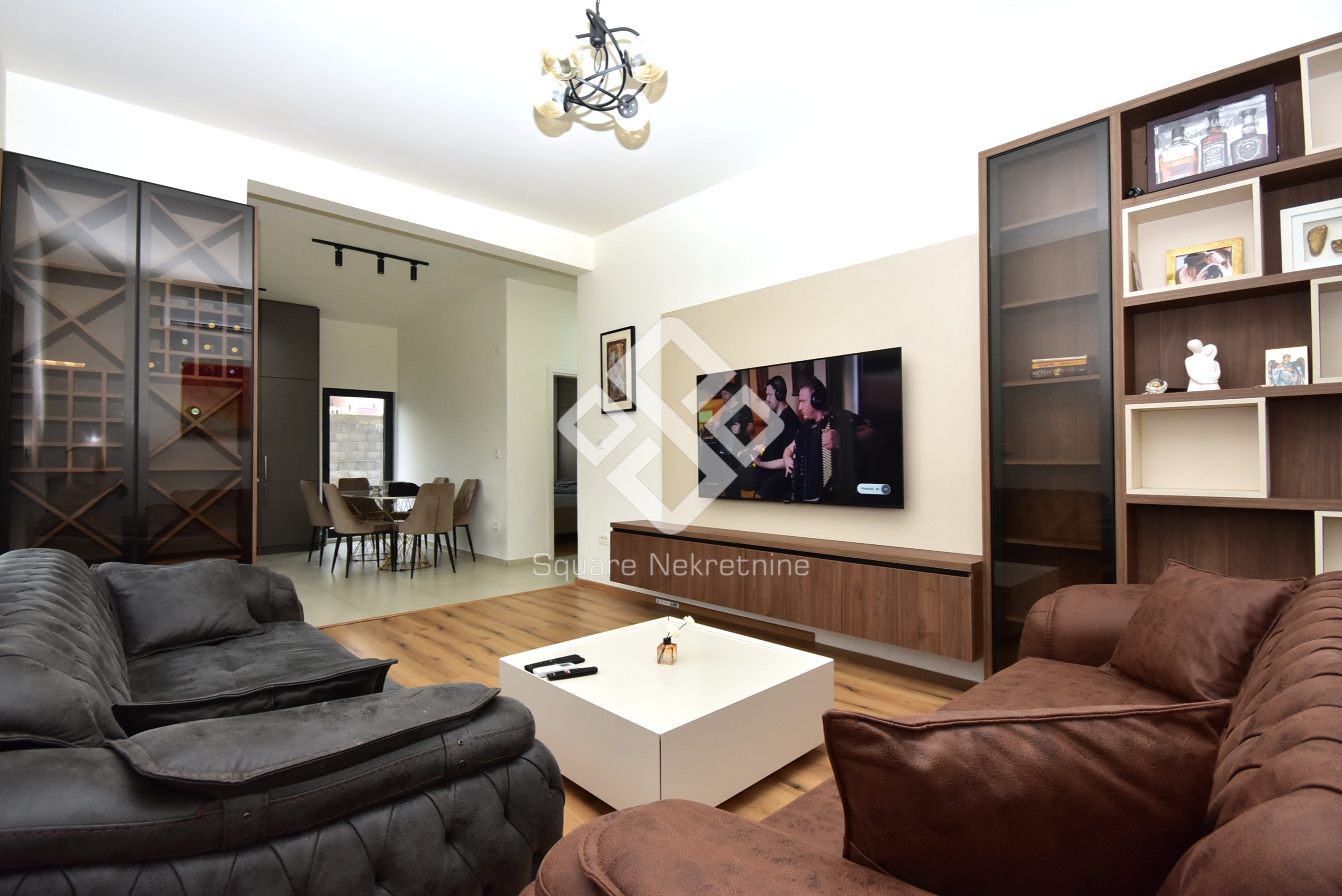 Na prodaju trosoban stan povrsine 80m2 (u listu upisano 73m2). Nalazi se na prizemlju manje zgrade na Zabjelu u blizini pasarele. Stan je veoma komforan i odlicnog rasporeda a posjeduje i obezbijedjena 2 parking mjesta kao i 250m2 privatnog dvorista.Kompletno i kvalitetno je namjesten i kao takav se prodaje.Veoma mirna i dobra lokacija,u blizini osnovnih skola,vrtica,vecih marketa Lakovic i Voli,sto ga cini odlicnim porodicnim stanom.Orjentisan je istok-jug-zapad.